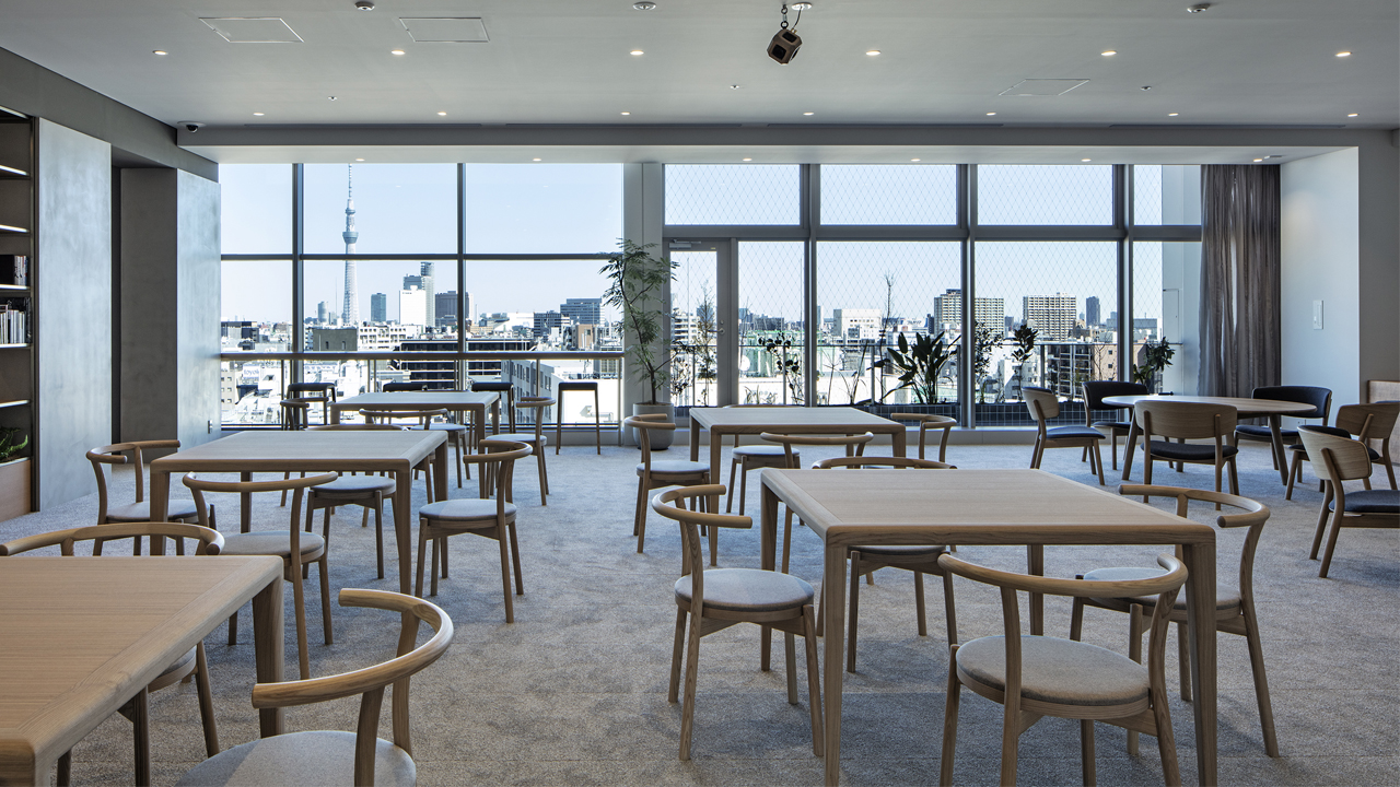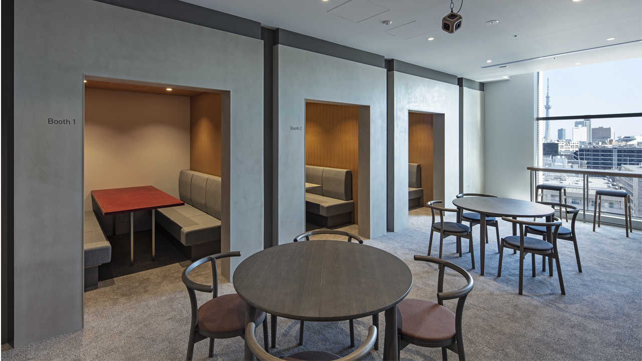 - 打ち合わせやプレゼン、休憩など、多様なシーンで活用できます。開放的なラウンジ空間や屋上テラス、ブース、個室の会議室に加え、プロジェクターなどの設備機器や無線LAN環境を完備。また、情報収集やアイデア創出に役立つライブラリーを併設するほか、健康に配慮したドリンクも提供します。