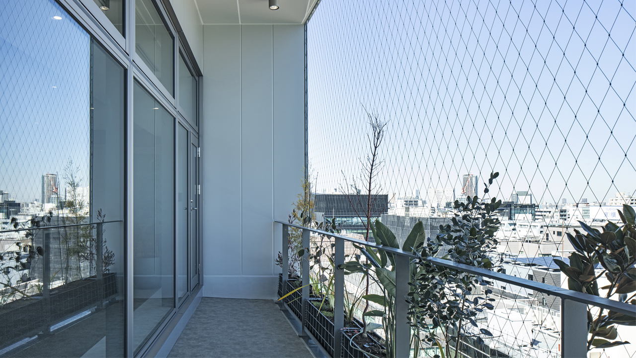 - 各階にテナント専用のバルコニーを設置。貸室内の換気ができることに加え、オープンで心地よいリフレッシュ空間を提供します。